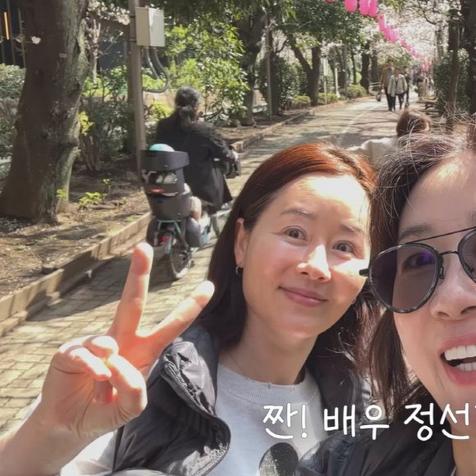 도쿄 벚꽃 거리 산책 장면에서 오연수 뒤로 손을 흔들며 등장한 분이 바로 정선경 이었어요.